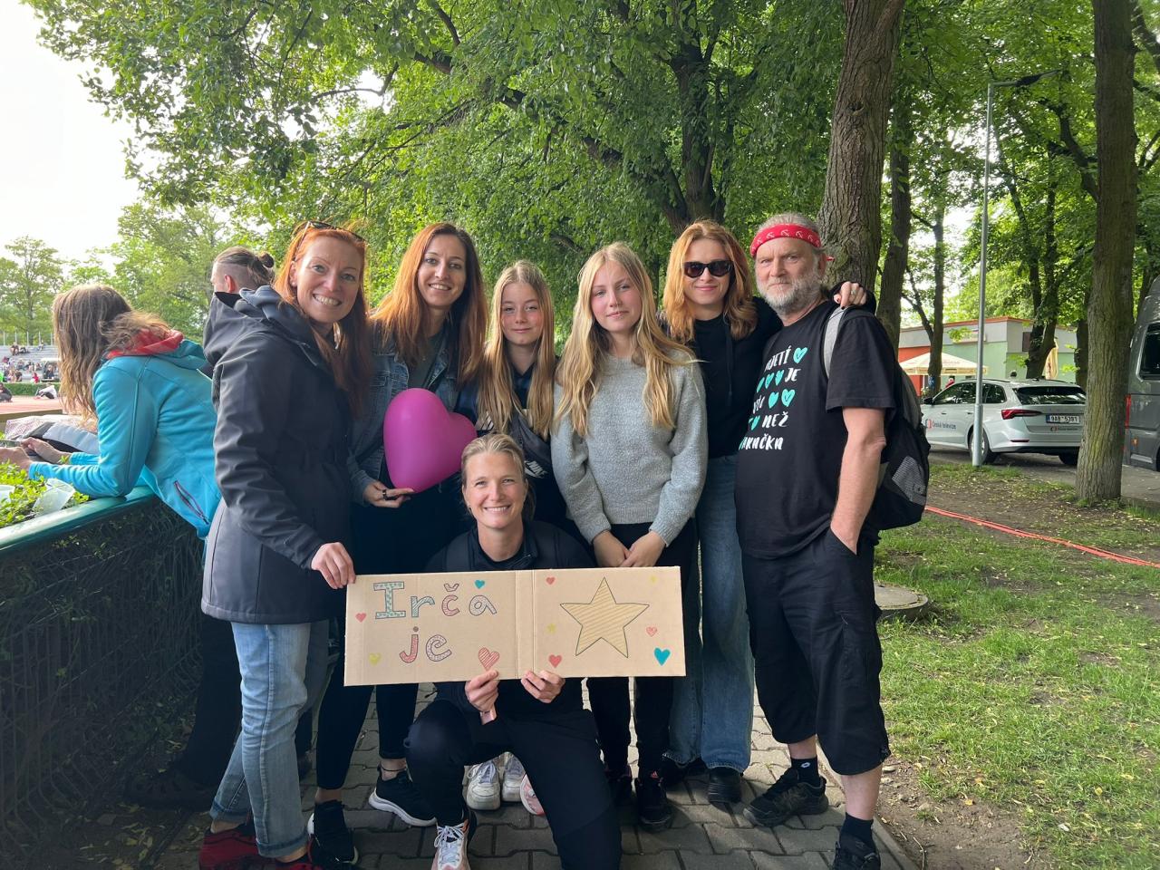 Naše děvčata společně se strejdou Milanem a Dobrými vílami přijela povzbudit Irenu Gillarovou (ale i další borce a borkyně) na jednodenní hvězdně obsazený světový atletický mítink "Kladno hází". (Foto pořídila Haruka Kitagučiová, japonská oštěpařka, žijící v Domažlicích, která se vloni stala mistryní světa v hodu oštěpem...)